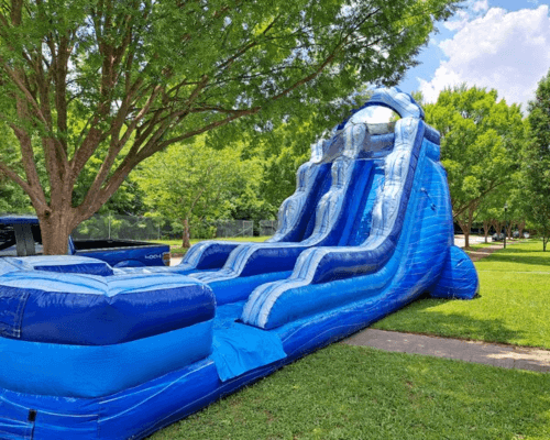 Cool off and turn your backyard into a mini water park with the 18' Blue Rush Water Slide! This towering inflatable slide delivers high-speed thrills as kids zoom down into a splashy pool at the bottom. It’s the perfect way to keep the party going on a hot day and is guaranteed to be a hit with guests of all ages!